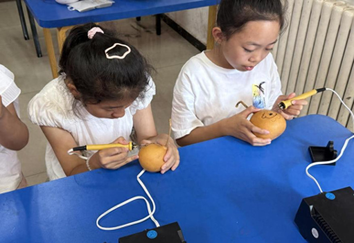 近日,任城区济阳街道运河社区“马兰花”课堂暑托班组织开展非遗葫芦烙画体验活动,邀请市级非遗项目葫芦烙画代表性传承人刘鹏现场授课,带领社区孩子们感受传统工艺的独特魅力。